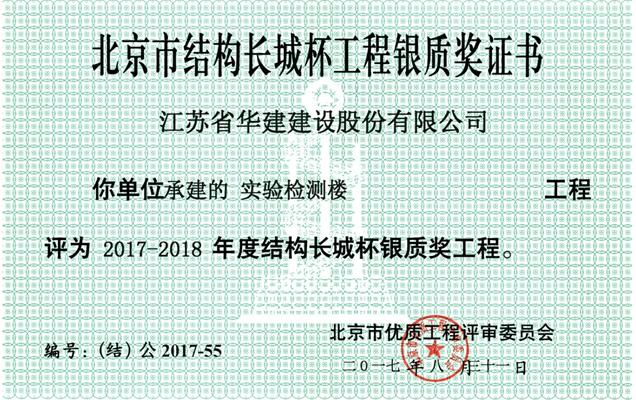 近日,北京市工程建設質量管理協會發文表彰了2017-2018年度北京市結構長城杯工程及獲獎單位,由北京公司承建的金風科技試驗檢測樓項目獲得結構長城杯銀質獎。