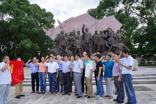 8月12日,上海分公司黨總支組織部分黨員干部和入黨積極分子共18人,赴愛國主義教育基地福建古田開展“促兩學一做,走紅色之旅”教育活動,在“主席園”向毛主席像敬獻花籃,在“豐碑軍魂”雕像前面對黨旗重溫入黨誓詞,還仔細參觀古田會議地址和紀念館,回顧緬懷了老一輩無產階級革命家的不朽事跡。大家牢記“古田會議永放光芒”精神,紛紛表示:“不忘初心,繼續前行”。