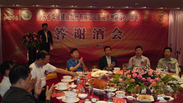 公司在惠隆重召開參加惠州建設20周年慶典暨答謝酒會 時間:2012-11-06 4518 公司在惠隆重召開 參加惠州建設20周年慶典暨答謝酒會 11月4日,公司在惠州凱賓斯基酒店王子飯店隆重召開參加惠州建設20周年慶典暨答謝酒會,公司副董事長、總經理宗有農主持酒會并作開場致辭。惠州市有關政府部門、部分合作方企業的負責人,華建聯盟成員單位負責人,公司董事、監事和高管等130余人出席慶典。惠州公司總經理華恒榮介紹了公司參加惠州建設20年的有關情況。惠州市工商聯主席、公司戰略合作伙伴恒宇實業集團公司董事長楊滿芳代表合作方發言,惠州市住房和城鄉規劃建設局副局長陳訓政代表政府主管部門致辭,分別對江蘇華建進駐惠州施工、參加惠州建設20周年表示祝賀。公司董事長陸金龍代表公司總部對惠州市有關政府部門、相關合作方和社會各界人士給予公司的關心和支持表示誠摯的感謝,并表達了進一步加大支持力度、加強戰略合作、加快科學發展的意愿。 (峰年 文/圖)