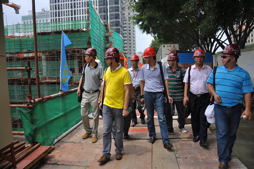 上海公司同仁來惠交流 時間:2013-06-15 4864 上海公司同仁來惠交流 6月9日,上海公司總工程師魏春明同志一行5人來惠交流工作。惠州公司經營層成員及各部室負責人與來訪同志就兩區域公司的基本情況以及發展困惑作了交流,并重點參觀考察了目前正施工的“大隆財富廣場”項目,就標準化建設、綠色建筑施工和優質工程建設等問題做了深入的探討。