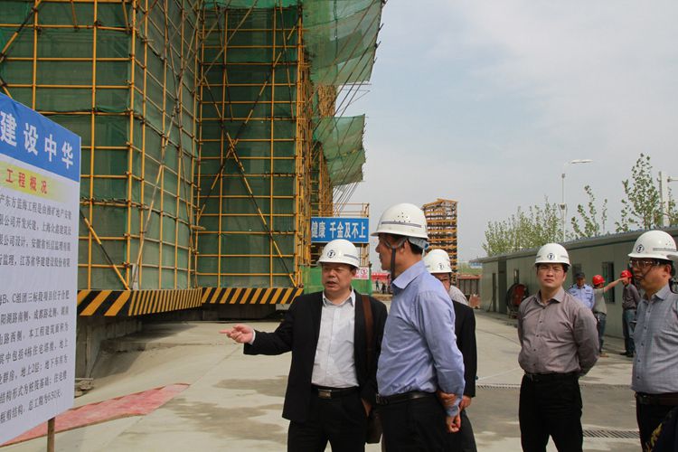 揚州市副市長聞道才赴安徽分公司東方藍海項目參觀考察 時間:2014-04-11 3420 4月10日下午,揚州市副市長聞道才在揚州市建設局成自勇副局長、唐朝文處長和廣陵區、邗江區、江都區副區長等的陪同下,赴我司合肥東方藍海B、C組團三標段項目參觀考察。公司副總經理陸俊、公司副總經理、惠州區域公司總經理華恒榮向來訪領導簡要介紹了江蘇華建在安徽市場的發展戰略及東方藍海B、C組團三標段項目的施工情況。 聞副市長對施工現場、施工組織非常滿意,并一再強調要抓好安全工作,爭創優質工程,為揚州建筑業在安徽市場的發展做出貢獻。