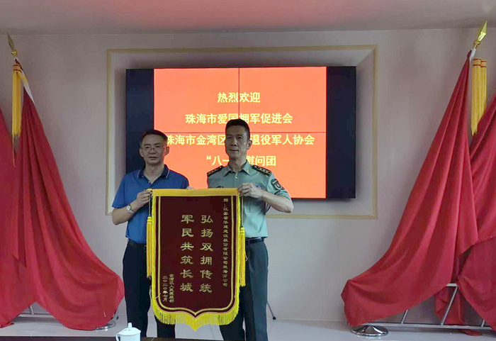 7月29日下午,珠海公司總經理呂方達冒著炎炎酷暑來到金灣區人民武裝部進行擁軍慰問,帶去了夏季消暑果品,向部隊官兵致以崇高的敬意和親切的關懷。