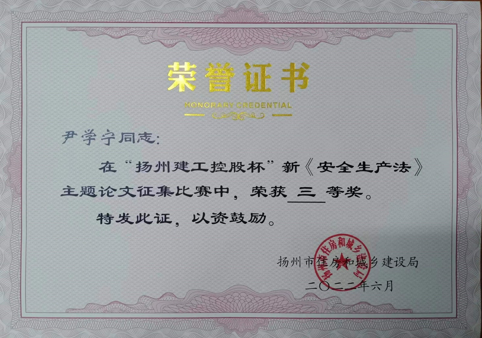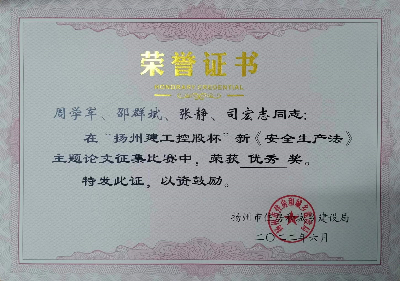 近日,從揚(yáng)州市住房和城鄉(xiāng)建設(shè)局傳來喜訊,由北京公司投稿的4篇論文榮獲“揚(yáng)州建工控股杯”新《安全生產(chǎn)法》主題論文征文比賽獎(jiǎng)項(xiàng),并獲頒證書,其中一等獎(jiǎng)一項(xiàng),三等獎(jiǎng)一項(xiàng),優(yōu)秀論文獎(jiǎng)兩項(xiàng)。