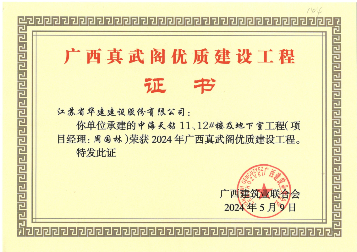 近日傳來喜訊,江蘇華建北京分公司三項(xiàng)工程榮獲質(zhì)量獎。中海天鉆13、14#樓及地下室、北側(cè)入口、圍墻工程和中海天鉆11、12#樓及地下室分別獲2024年廣西建設(shè)工程“真武閣杯”獎;中海望京府1#樓工程獲包頭市“金鹿杯”獎。