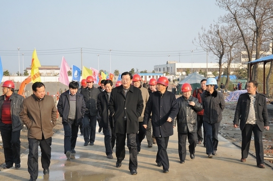 3月1日下午,揚州市政府副市長陳揚,市政府副秘書長、市城鄉(xiāng)建設(shè)局局長王駿,以及市建設(shè)、規(guī)劃、國土、人防等部門負責人前往江蘇華建代建的揚州建設(shè)大廈暨規(guī)劃展覽館、市民中心項目工地現(xiàn)場視察調(diào)研,揚州建工控股公司、江蘇華建董事長陸金龍陪同視察,并向陳副市長一行簡要匯報了工程施工進展情況。陳副市長對建設(shè)大廈總體施工進展表示滿意,希望所有參建單位精心組織,科學管理,確保這一政府重點工程建設(shè)順利推進。同時他希望市各相關(guān)部門創(chuàng)新思維,主動服務(wù),為建設(shè)大廈項目的施工建設(shè)提供支持。公司領(lǐng)導吳士茂、程杰等也一起陪同視察。