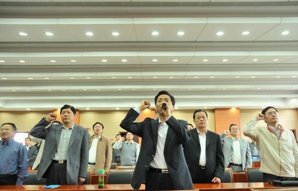 揚(yáng)州建工控股系統(tǒng)組織黨員干部到揚(yáng)州市警示教育基地參觀接受教育 時(shí)間:2011-05-27 5266 5月27日上午,建工控股公司機(jī)關(guān)、華建總部黨員干部和揚(yáng)建、揚(yáng)安、華宏、中專校等單位領(lǐng)導(dǎo)班子成員及黨務(wù)、紀(jì)檢、財(cái)務(wù)、行政等部門中層負(fù)責(zé)人共80多人,到揚(yáng)州市警示教育基地參觀接受教育,大家觀看了預(yù)防腐敗警示教育宣傳圖片、電視專題片和違法犯罪人員現(xiàn)身說法錄像。建控公司黨委書記、董事長陸金龍?jiān)趨⒂^結(jié)束前作了誡勉講話,指出這次建控系統(tǒng)組織黨員干部開展廉潔自律警示教育活動(dòng),是加強(qiáng)干部能力作風(fēng)建設(shè)的一項(xiàng)重要內(nèi)容。一系列反面案例帶來的教訓(xùn)和思考,令大家深受觸動(dòng)。見不賢而內(nèi)自省。建控系統(tǒng)廣大黨員干部要從確立正確的角色定位、樹立合理的人生追求、建立完善的制度保障、打造健康的從業(yè)環(huán)境四個(gè)方面入手,進(jìn)一步加強(qiáng)廉政教育、樹立自律意識(shí)、保持清廉本色,從而提高干事業(yè)、謀發(fā)展的能力和水平,為創(chuàng)建“三個(gè)揚(yáng)州”、建設(shè)和諧社會(huì)作出應(yīng)有貢獻(xiàn)。最后,陸金龍同志帶領(lǐng)大家集體進(jìn)行了莊嚴(yán)的廉政承諾宣誓。