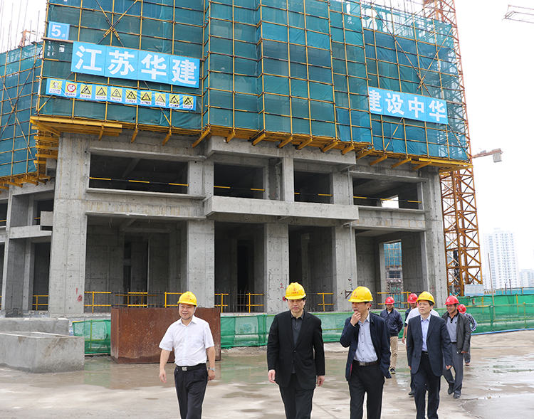 在公司承建的恒大外灘中心施工現(xiàn)場,朱市長與項(xiàng)目管理人員一一握手,向大家表示親切問候。在陪同人員引導(dǎo)下,他饒有興致地邊走邊看,聽取項(xiàng)目負(fù)責(zé)人對工程特點(diǎn)、工程進(jìn)展、工程用材等方面的情況匯報(bào),不時(shí)點(diǎn)頭稱贊施工人員的工藝水平和施工技藝,并與項(xiàng)目部主要管理班子親切合影。