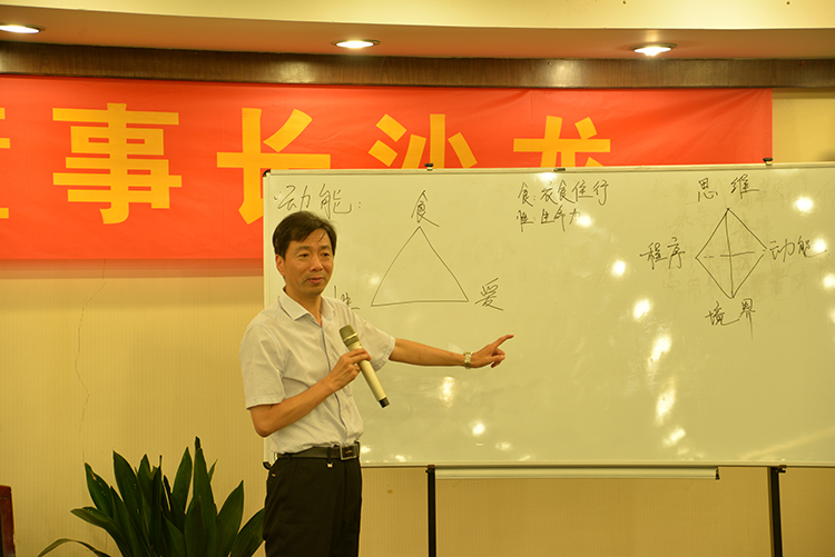 在主題活動董事長沙龍階段,11家成員單位的董事長重點就新常態下企業如何建立科學有效的分配激勵機制登臺分享路演,圍繞機制創新、成功案例進行分享,針對企業發展過程中遇到的問題提出困惑。企業多元持股結構、區域公司模擬股份制、項目股份制、責任經營等等,成功經驗各具特色;物質刺激達不到效果、職業合伙人如何向事業合伙人轉變、崗位年薪量化不科學等等,各類問題不一而足。陸主席逐個“診斷把脈”,條分縷析地給出指導建議和應對之策。他指出,凡是事業不成功就是不懂得約定,舍得分只是格局,懂得分才是智慧。老板要善于經營落差,數字說話,結果導向。經營人就是要經營人的神圣感,要把有本事的員工渡到他要去的彼岸,讓員工與社會、企業互生,先富起來,再立起來,然后再貴起來,從利益共同體向榮譽共同體和精神共同體過渡。最后,他提出了四個方面的要求:一是思維方面,他從“定義、原則、分配、市場化”這個金字塔維次上強調,分配需要通過股權化、期權化、分紅化、薪酬化來運作,實現自主化、合作化、市場化、標準化。老板絕塵,讓全體員工發力,為過程鼓掌,為結果買單;二是程序方面,分配要有利他思想,對公司、分公司、項目團隊和個人都要分紅;三是境界方面,一個人的執行力可以看他的狀態、能力和立場,老板和員工雙方都要進入新境界變成一伙人才能把公司搞好;四是動能方面,要從食(衣食住行)、性(生命力)和愛(愛自己、愛家庭、愛家族、愛公司團隊)方面全面要求,站在行業前沿,才能引領行業前行。