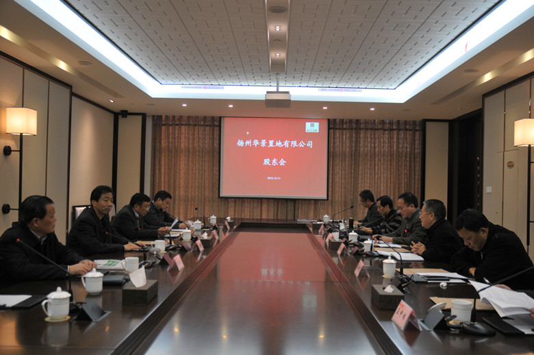 1211下午,揚州華景置地有限公司股東會和揚州華建置地股東會分別在企業展示中心召開,會議由華建地產董事長程杰主持,江蘇華建董事長陸金龍、監事會主席吳士茂及各股東單位代表、公司經營層出席會議。