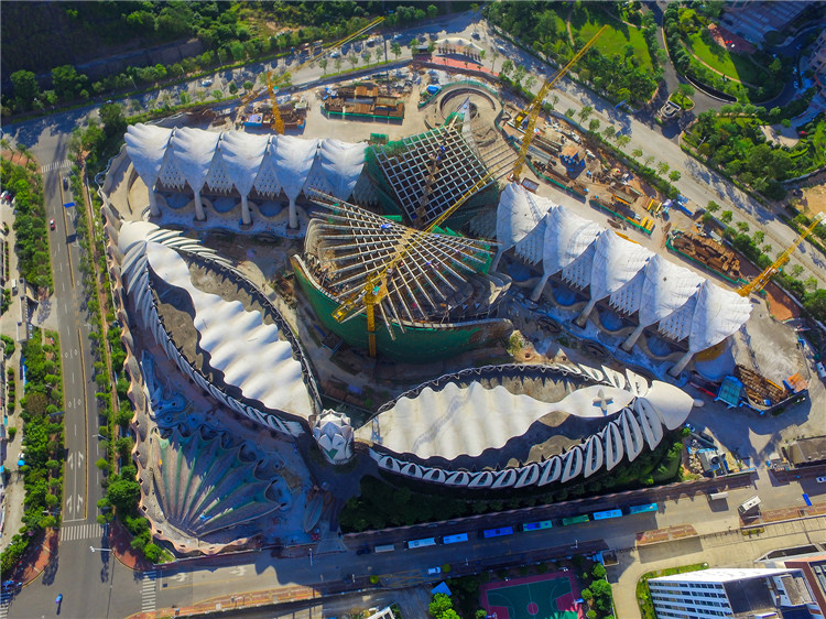 深圳瑪絲菲爾工業(yè)廠區(qū)工程總建筑面積約11萬m2,工程主體為鋼與鋼筋混凝土組合異型結(jié)構(gòu),外部及屋頂由對(duì)稱布置的56個(gè)雙曲面混凝土葉片結(jié)構(gòu)圍護(hù),建筑外表面采用碎拼面磚、磚片、石塊作為裝飾,為國(guó)內(nèi)目前面積最大的仿生藝術(shù)建筑。工程中雙曲葉面、背葉面、旋轉(zhuǎn)坡道、異形柱等鋼結(jié)構(gòu)造型復(fù)雜,鋼結(jié)構(gòu)構(gòu)件加工制作尺寸控制難度大、精度高。項(xiàng)目部與設(shè)計(jì)院聯(lián)合攻關(guān),在該項(xiàng)目迄今為止已獲得8項(xiàng)發(fā)明專利,24項(xiàng)實(shí)用新型專利,創(chuàng)國(guó)家級(jí)工法1項(xiàng)、省級(jí)工法6項(xiàng)。兩次迎接國(guó)內(nèi)同行的大規(guī)模學(xué)習(xí)觀摩。