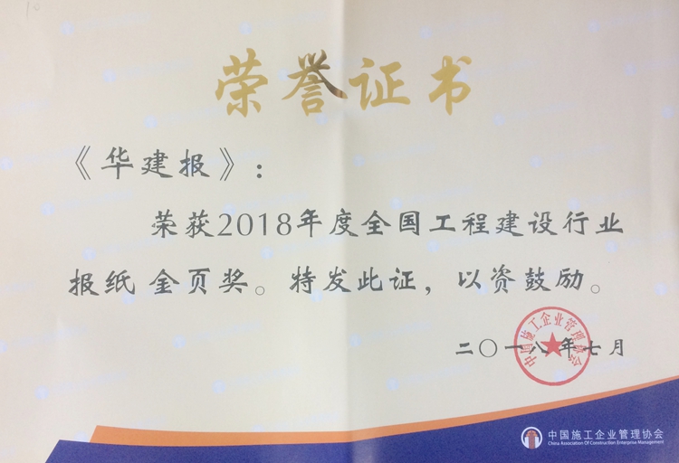 《華建報》再獲“全國工程建設(shè)行業(yè)報紙金頁獎” 時間:2018-07-23 5024 7月18日至20日,中國施工企業(yè)管理協(xié)會2018年度工程建設(shè)企業(yè)文化論壇暨通聯(lián)員工作會議在蘇州召開。公司內(nèi)刊《華建報》再度獲評“2018年度全國工程建設(shè)行業(yè)報紙金頁獎”,公司翟法寶獲評“2018年度中國施工企業(yè)管理協(xié)會優(yōu)秀聯(lián)絡(luò)員”。