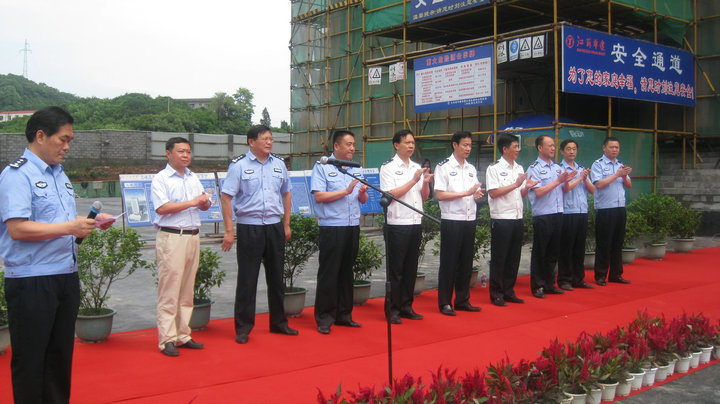 “三峽反恐指揮技術中心大樓正式封頂!”在宜昌市委常委、政法委書記、市公安局局長蔣國平宣布下,71915整,我公司承建的三峽反恐中心工程封頂儀式在項目現場隆重舉行。宜昌市委常委、政法委書記、市公安局局長蔣國平及公安局主要領導,公司副總經理、海南公司總經理王宏等領導應邀出席封頂儀式。