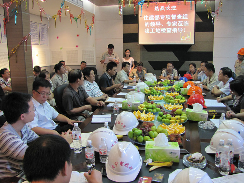 住建部建筑施工安全專項督查組檢查指導廣西麗原•天際城項目 時間:2010-10-14 5308 9月18日上午,國家住房城鄉建設部建筑施工安全專項督查組蒞臨我公司廣西麗原·天際城工地檢查指導工作,勘察了施工現場的實體安全狀況,查閱了施工質量安全技術資料,檢查了我公司的資質、安全許可、三類人員與特種作業人員持證的情況。項目部的安全防護與文明施工工作受到了督查組的一致好評,住建部工程質量安全監管司王樹平副司長在知道我們爭創“魯班獎”的情況后,提出了許多寶貴的意見,并預祝我們的質量目標得以圓滿實現。 另訊,此前麗原·天際城工程項目被評為2010年上半年廣西自治區文明工地。