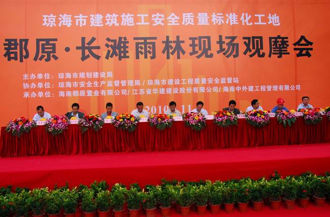 受江蘇華建副總經理、海南公司總經理王宏的委托,海南公司副總經理、總工程師高家馴就郡原•長灘雨林項目在安全質量管理和施工現場標準化管理等方面作了題為“以人為本,開展項目安全質量管理”的經驗介紹,得到了與會省、市領導的充分肯定和高度評價。