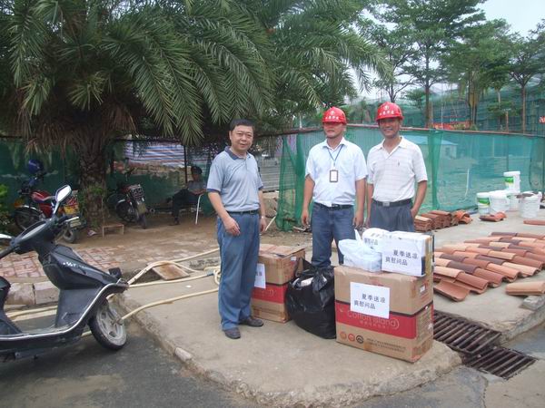 王宏總經理赴施工一線慰問 時間:2012-07-08 5906 6月15日上午,公司副總經理、海南分公司總經理王宏帶領施工安全設備處同志頂著炎炎烈日給三亞鹿回頭國賓館施工人員送去涼爽,對在一線施工的全體職工進行了慰問。送涼爽慰問活動是公司今年安全月活動一項重要內容,體現了公司領導對一線工人的關懷。