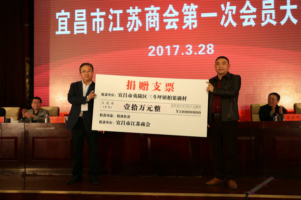 會議選舉產(chǎn)生了商會第一屆領(lǐng)導(dǎo)班子,公司副總經(jīng)理陸俊當(dāng)選首任會長,通過公司董事長王宏為宜昌市江蘇商會第一屆名譽(yù)會長。為幫助貧困村脫貧攻堅(jiān),宜昌市江蘇商會現(xiàn)場向夷陵區(qū)三斗坪鎮(zhèn)柏果淌村捐贈幫扶資金10萬元。
