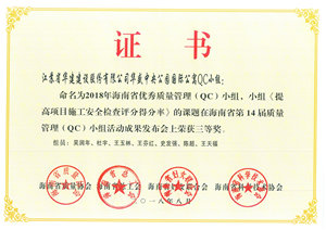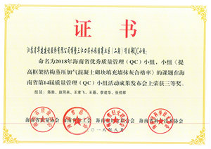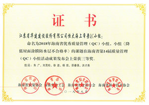日前,海南省質(zhì)量協(xié)會(huì)公布了2018年海南省“優(yōu)秀質(zhì)量管理(QC)小組”活動(dòng)成果評比結(jié)果,海南分公司共有5項(xiàng)成果受到表彰。其中,海花島2#島三(一)期2-10-1地塊QC小組榮獲二等獎(jiǎng),博鰲三江口濱水旅游商業(yè)區(qū)(二期)項(xiàng)目部QC小組、三亞婦幼保健院整體搬遷(新址)建設(shè)項(xiàng)目QC小組、恒大海上帝景QC小組、華盛中央公園國際公寓QC小組榮獲三等獎(jiǎng)。