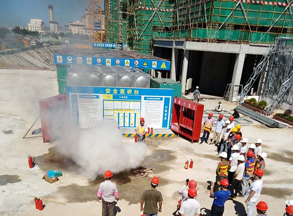 期間,海南公司還在華盛·中央國際廣場一期項目部組織開展了消防演練活動。海口及周邊在建項目主要管理人員與項目各工種人員共40余人深入學習了建筑工地常見的火災原因及滅火辦法,并進行了滅火訓練。此次消防知識培訓及滅火演練為項目人員上了生動的一課,在增加相關知識和技能的同時,提高了消防安全意識。