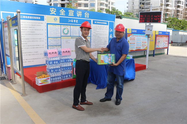 610日上午,海南分公司黨總支副書記、工會主席郁遠帶隊走訪慰問海口恒大·美麗沙項目部,檢查項目安全生產情況,并給奮戰在高溫、露天生產第一線的員工送去涼茶、綠豆、人丹等防暑用品,送去企業及工會組織的關懷。