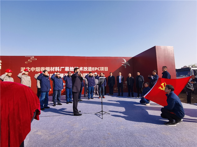 為深化黨建工作內涵,發揮所有參建單位黨員在工程建設中協作共建作用,推動三方合作邁上新臺階,開工儀式上,湖北中煙材料廠技改支部、中機六院第一黨支部和江蘇華建湖北分公司黨支部共同舉行了黨支部結對共建活動,重溫了入黨誓詞,推動三方共同打造黨建合作品牌,為項目建設奠定了政治基礎和組織保障。