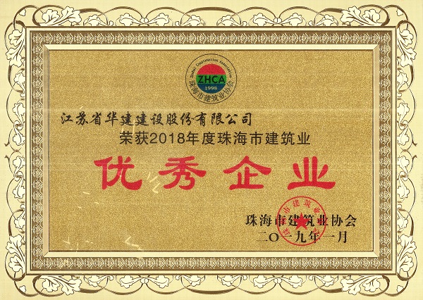 公司獲評2018年度珠海市建筑業(yè)優(yōu)秀企業(yè)