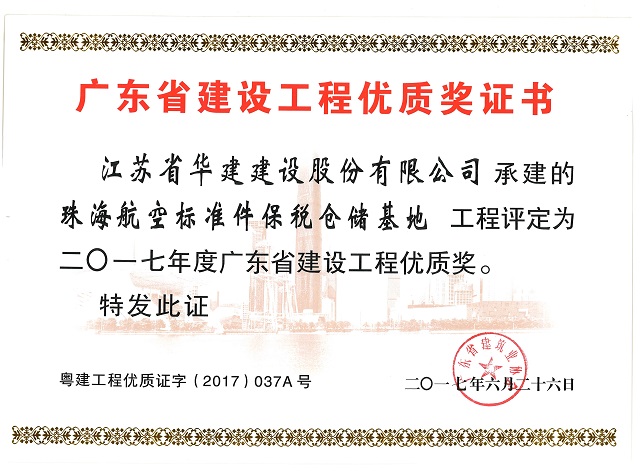 珠海航空標(biāo)準(zhǔn)件保稅倉儲(chǔ)基地 2017年度廣東省建設(shè)工程優(yōu)質(zhì)獎(jiǎng)