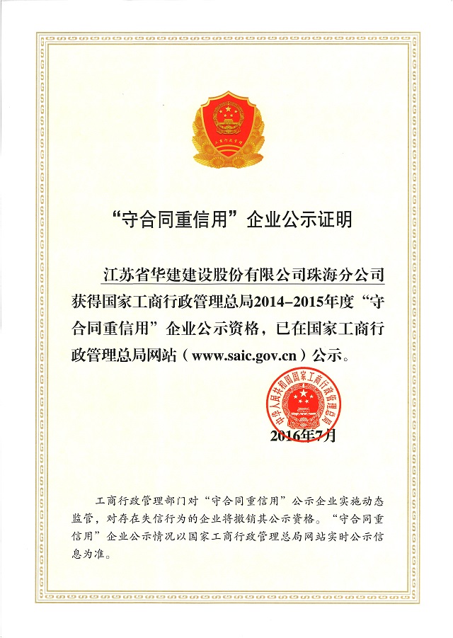 2016年10月28日下午,珠海市工商行政管理局舉行2014—2015年度國(guó)家“守合同重信...