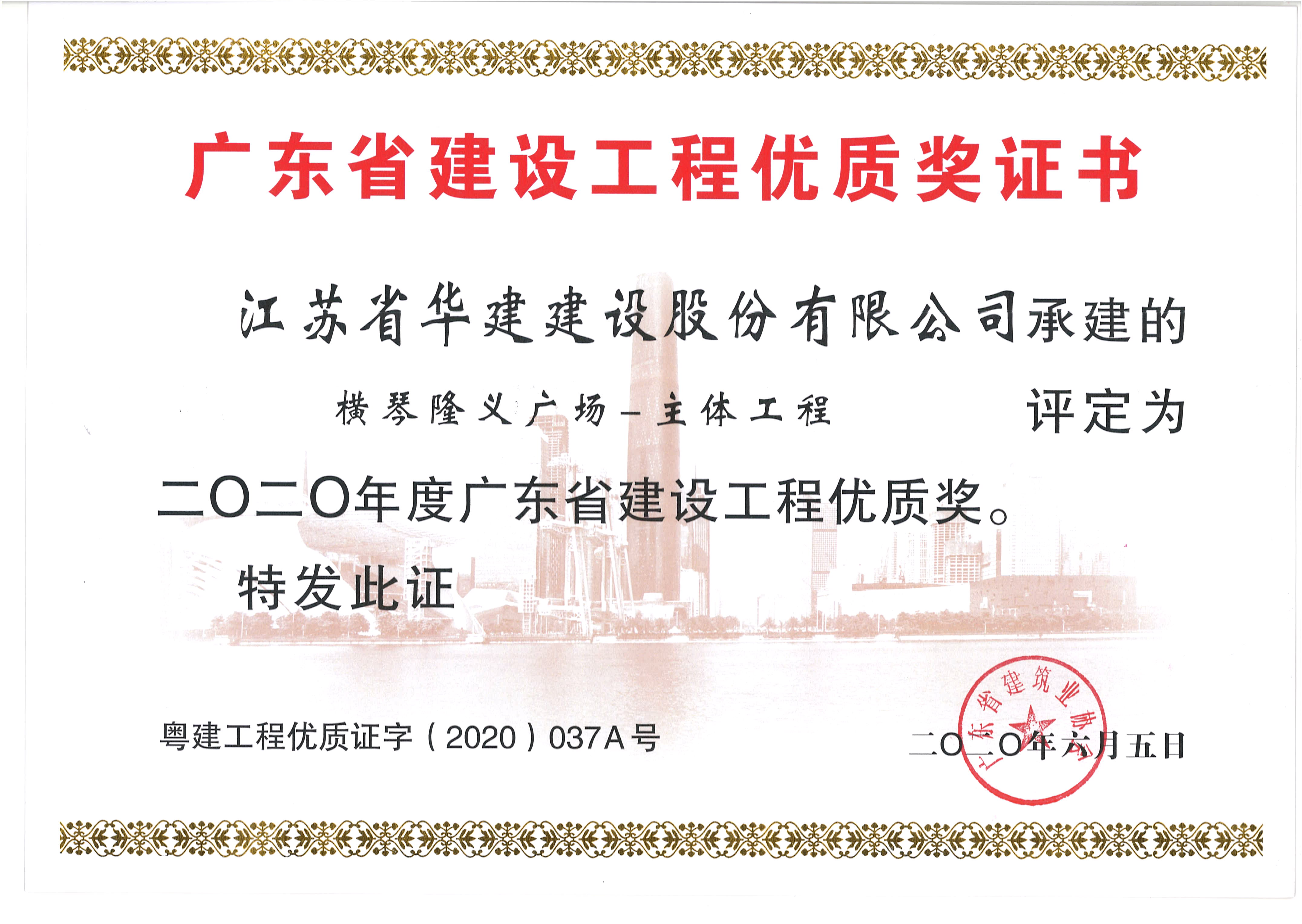 橫琴隆義廣場-主體工程獲2020年度廣東省建設(shè)工程優(yōu)質(zhì)獎