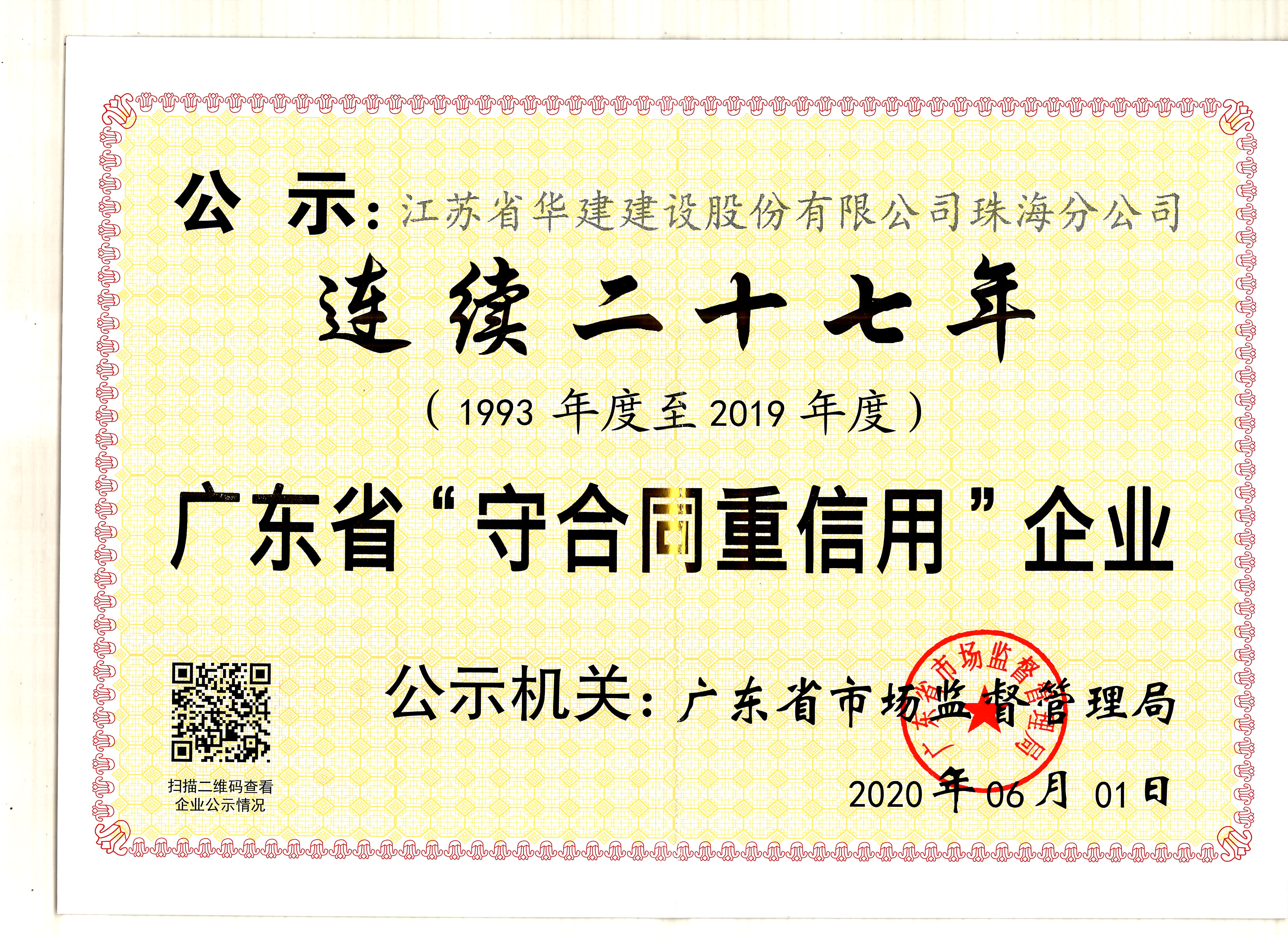 連續(xù)二十七年廣東省守合同重信用企業(yè)
