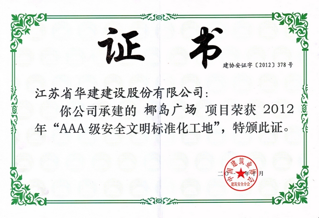 椰島廣場 時間:2013-01-17 11249 椰島廣場項目位于??谑旋埲A路,該工程總建筑面積115562平方米,其中地下室建筑面積20388平方米,1#-4#樓地上建筑面積58689平方米,建筑高度93.35米,5#-6#樓地上建筑面積36485平方米,建筑高度96.45米。工程于2011年4月30日開工,工期為480天。 2012年10月,該工程被中建協評為2012年“AAA級安全文明標準化工地”。