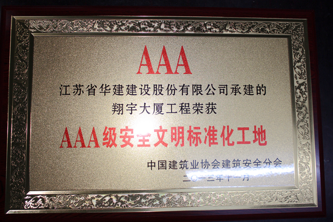 淮安翔宇大廈位于淮安市新城區(qū)重要地段,是淮安市重點工程,2011年7月開工(在建),框剪結(jié)構(gòu),為22層、總高度88.6米的高層建筑,由南樓(辦公用房)、中樓(大會堂和會議中心)、北樓(一至四層為對外服務(wù)大廳、通訊交換機房和食堂等輔助用房)及裙房(一層)和地下室(水池泵房、交配電房和汽車停車庫)組成,占地51畝、建筑面積9萬平方米,其中地下停車場面積約1.8萬平方米,工作量5億元。工程榮獲2012年江蘇省建筑施工文明工地稱號,是淮安市安全文明施工觀摩工地。2013年11月,該工程被中建協(xié)安全分會表彰為AAA級安全文明標準化工地。