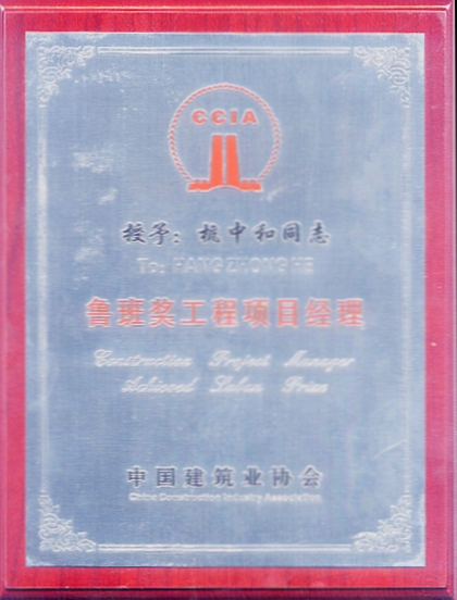杭中和,高級工程師,高級經濟師,現(xiàn)任深圳公司七處黨支部書記。曾任七處主任多年,先后擔任深圳招商銀行大廈等一批高大難工程的項目經理,創(chuàng)魯班獎工程1項,曾獲“全國建筑業(yè)企業(yè)優(yōu)秀項目經理”稱號,被授予“創(chuàng)魯班獎工程項目經理特別證書”。