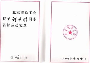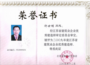 許世明所帶領(lǐng)的團(tuán)隊(duì)先后獲得“北京市優(yōu)秀青年突擊隊(duì)標(biāo)桿”、“全國職工職業(yè)道德建設(shè)百佳集體”、“北京市工人先鋒號”、“北京市模范集體”等榮譽(yù)稱號;其本人先后獲得“揚(yáng)州市建工系統(tǒng)優(yōu)秀共產(chǎn)黨員”、“江蘇省優(yōu)秀項(xiàng)目經(jīng)理”、“北京市優(yōu)秀青年工程指揮”、“第二屆北京市創(chuàng)業(yè)青年首都貢獻(xiàn)獎”、“首都勞動獎?wù)隆薄ⅰ敖K省建筑業(yè)企業(yè)優(yōu)秀建造師”等榮譽(yù)稱號,許世明同志還被選拔為 “江蘇省333高層次人才培養(yǎng)工程”中青年科學(xué)技術(shù)帶頭人。