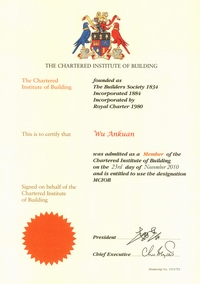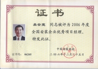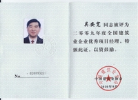 2002年開始他被聘為北京市建設(shè)工程評標(biāo)專家;2003年獲“中國安裝企業(yè)優(yōu)秀項(xiàng)目管理工作者”稱號,2004年獲全國工程建設(shè)“優(yōu)秀項(xiàng)目經(jīng)理”稱號;2006年獲全國安裝企業(yè)優(yōu)秀項(xiàng)目經(jīng)理; 2007年獲揚(yáng)州市國資委黨委頒發(fā)的“三強(qiáng)”黨支部書記稱號;2008年12月獲得中共北京市外地在京施工企業(yè)委員會頒發(fā)的在奧運(yùn)工程建設(shè)中的優(yōu)秀共產(chǎn)黨員;2009年獲“江蘇省建筑業(yè)企業(yè)杰出建造師”和中國建筑業(yè)協(xié)會頒發(fā)的“全國建筑業(yè)企業(yè)優(yōu)秀項(xiàng)目經(jīng)理”榮譽(yù)稱號。2009年他還參加了英國皇家特許建造師(CIOB)國際執(zhí)業(yè)資格認(rèn)證培訓(xùn)。目前,他已順利通過考試,獲得英國皇家“英國特許建造師”資格。