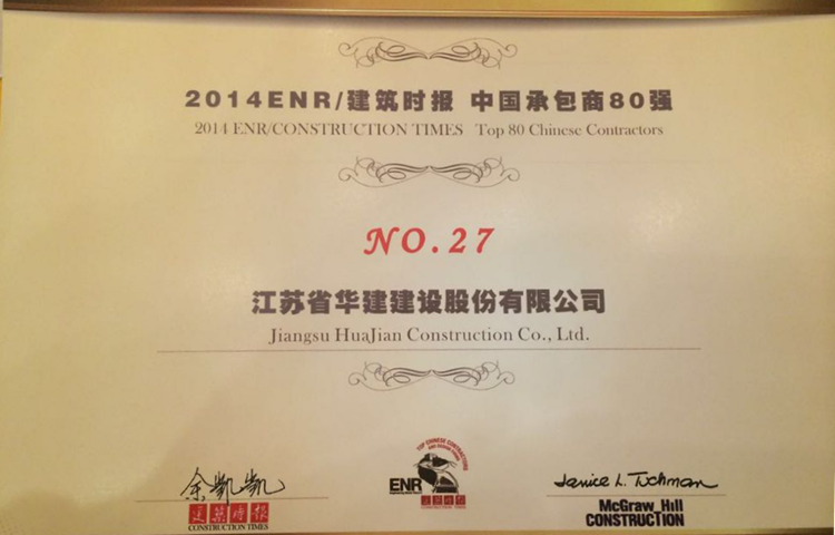 1121日,由美國《工程新聞記錄》(ENR)雜志與中國《建筑時報》合作舉辦的中國承包商80強和工程設計企業60強評比活動揭開榜單。公司成功入選中國承包商80強榜單第27位,比上年上升7位。