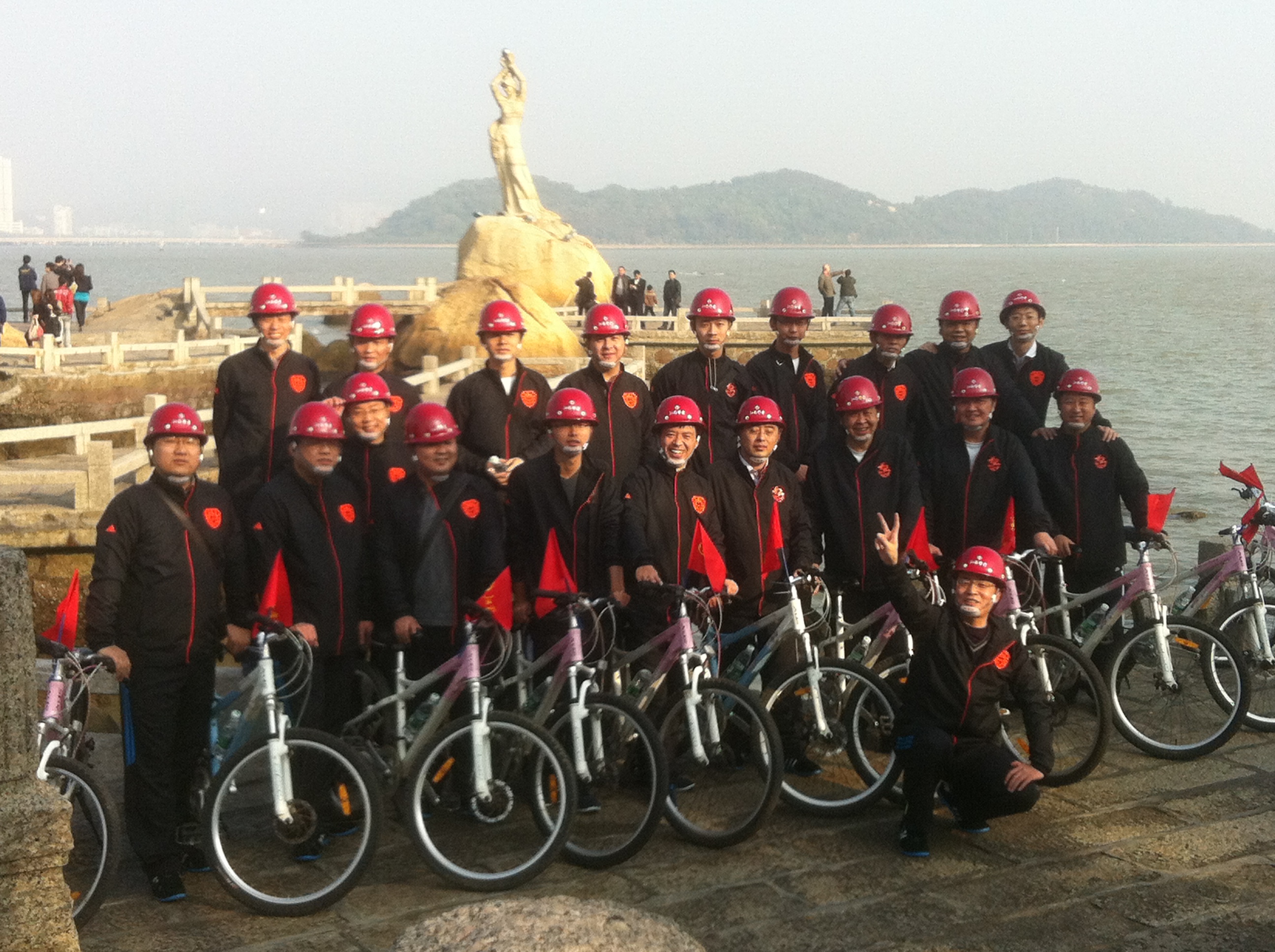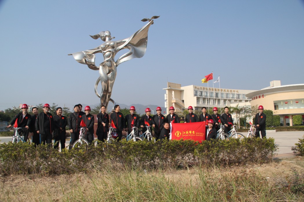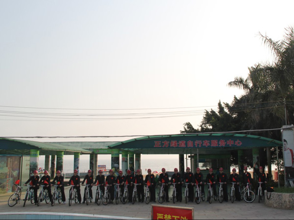 2012年1月1日上午9時,珠海區(qū)域公司全體員工在公司經(jīng)理室的帶領(lǐng)下,統(tǒng)一著裝,頭戴印有江蘇華建標(biāo)識的安全頭盔,騎著統(tǒng)一插有江蘇華建小紅旗的自行車,沿著珠海海濱綠道開展騎自行車迎新年活動。騎行的起點是珠海海濱浴場,終點是珠海淇澳島,來回全程56公里。騎行過程中,隊伍有序安全行進,引導(dǎo)車上醒目的江蘇華建大旗迎風(fēng)招展,每輛自行車前面的江蘇華建小紅旗也分外引人注目??妵鴺锌偨?jīng)理身先士卒,騎行在隊伍的最前面,無論是年近6旬的老員工,還是剛工作不久的新員工,個個爭先恐后,奮勇向前,江蘇華建這支特殊的“騎兵隊”在新年的第一天飛行在珠海的海濱綠道上,形成了一道亮麗的風(fēng)景線,引得許多路人和游客紛紛駐足觀望,許多攝影愛好者也紛紛舉起手中的相機爭相拍照。 這次元旦騎自行車活動既是一次低碳環(huán)保生活的宣傳,也是一次江蘇華建員工良好精神風(fēng)貌的展現(xiàn),通過這次活動既鍛煉了員工的體魄,更激發(fā)了員工們新的一年里奮發(fā)向上,團結(jié)拼搏,奔向新未來的昂揚斗志。