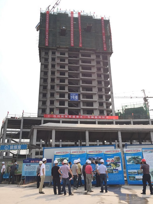 晚8點半,在蓮花大道及官盛春天1#樓現場同步進行了焰火燃放,慶祝蓮花大道下段順利竣工驗收及項目安置房首個樓棟主體結構封頂。